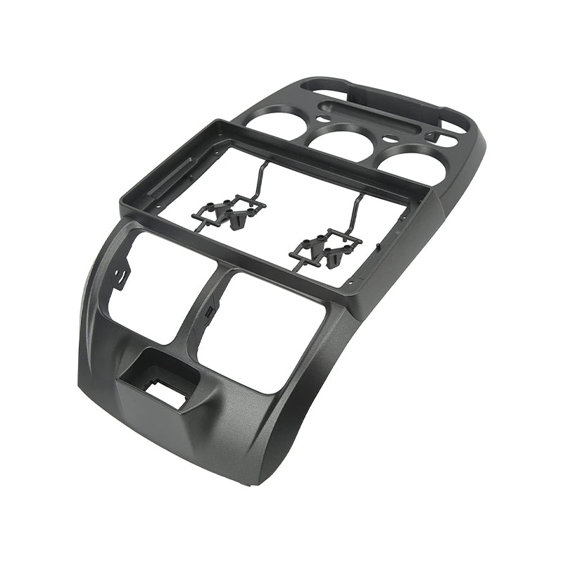 Car dashboard kit frame for easy installation and removal. Perfectly matches your original dashboard, allowing double DIN head unit installation in non-DIN car interiors. Ships assembled and ready to install.