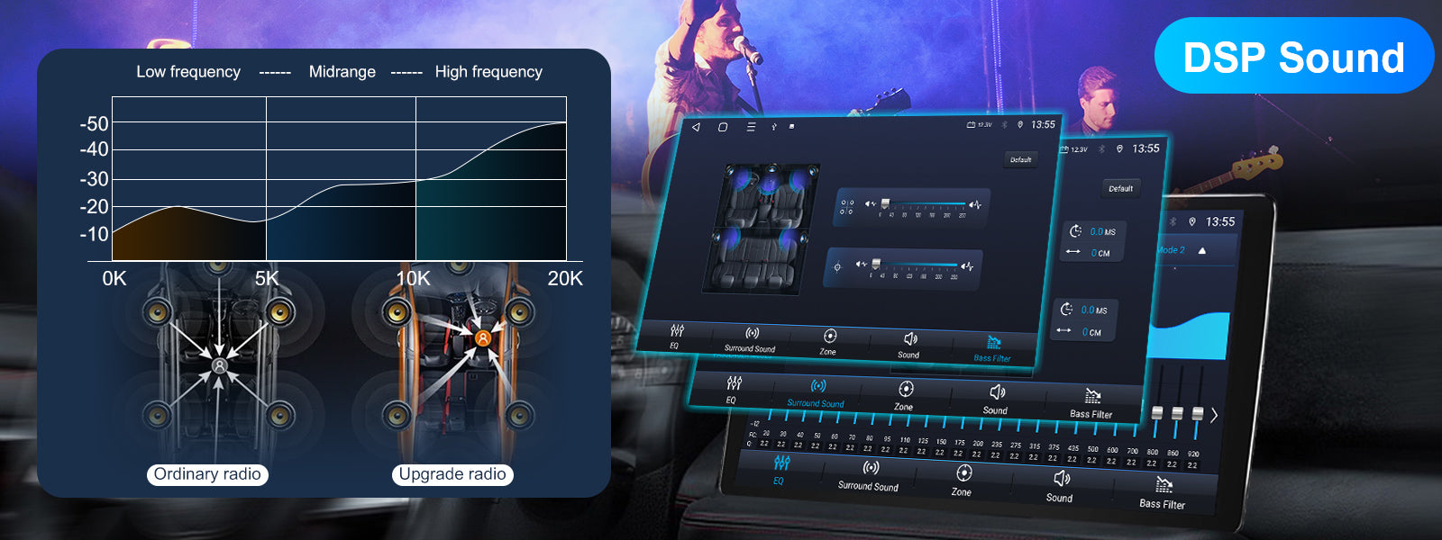 The car radio display responds instantly to inputs, demonstrating quick and seamless responsiveness.