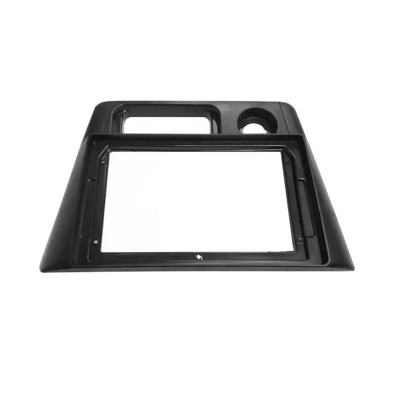 Car dashboard kit frame for easy installation and removal. Perfectly matches your original dashboard, allowing double DIN head unit installation in non-DIN car interiors. Ships assembled and ready to install.