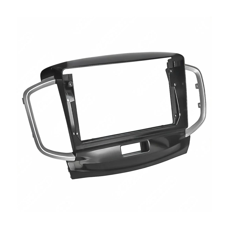 Car dashboard kit frame for easy installation and removal. Perfectly matches your original dashboard, allowing double DIN head unit installation in non-DIN car interiors. Ships assembled and ready to install.